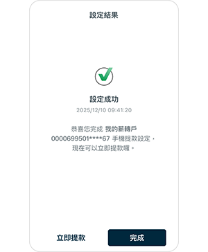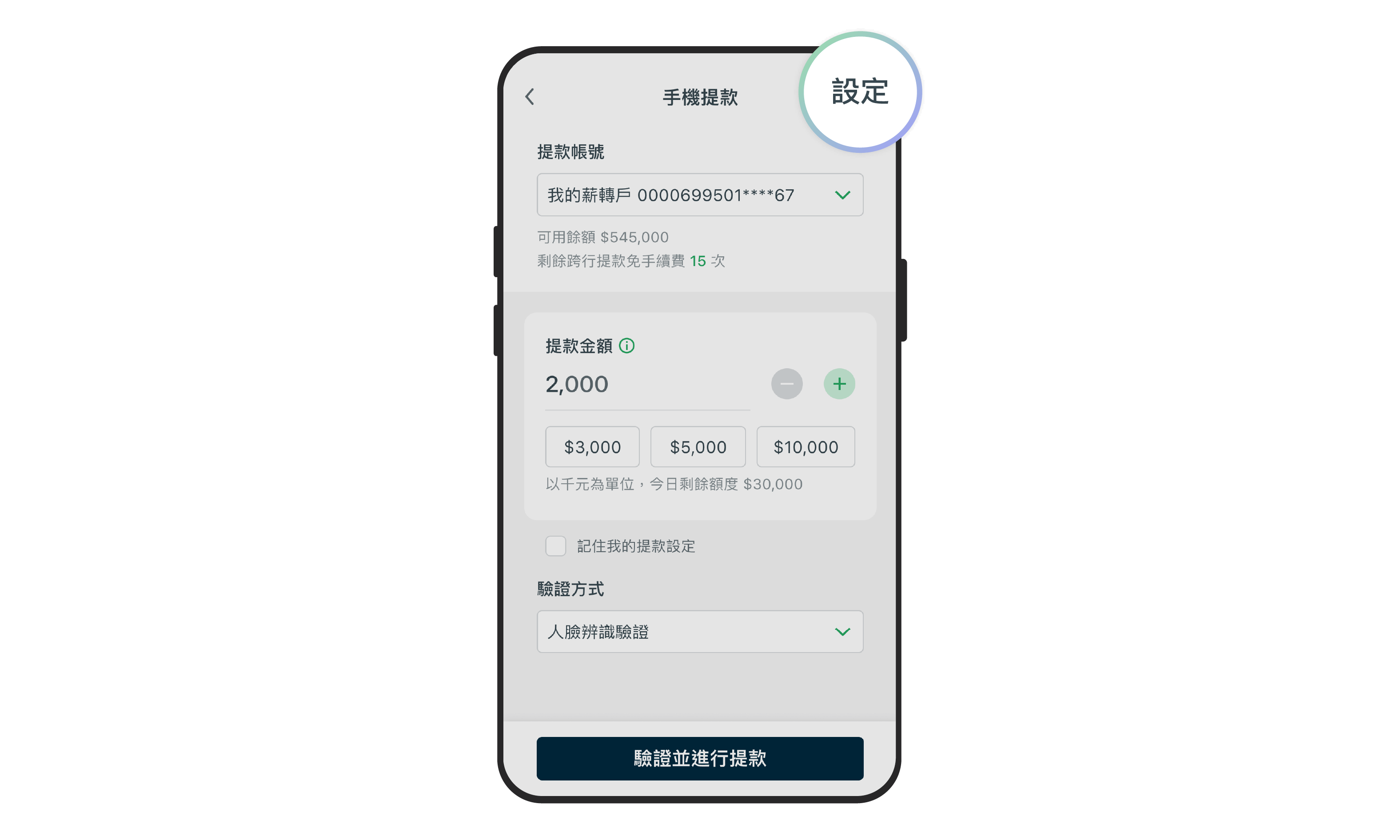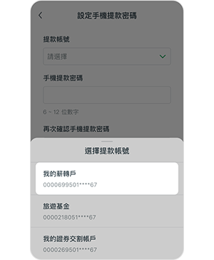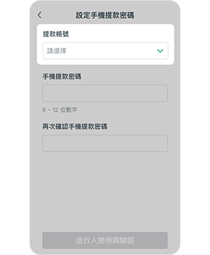 選擇「提款帳號」、 「金額」與「驗證方式」