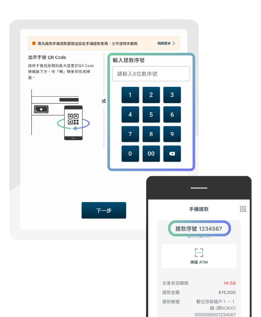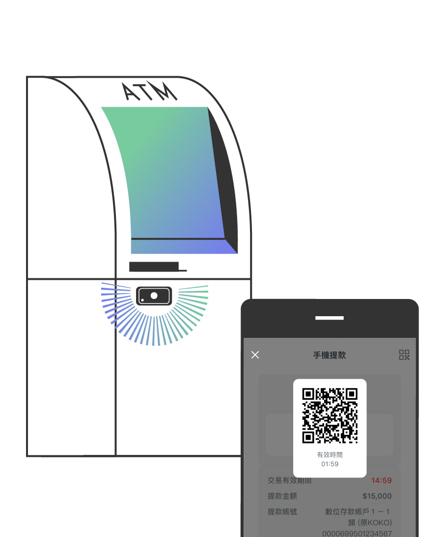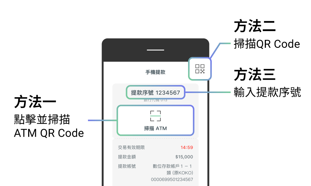 以下銀行ATM可使用序號或掃描ATM QR Code進行手機提款