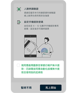 於ATM點選「國泰世華手機提款」或「無卡交易」