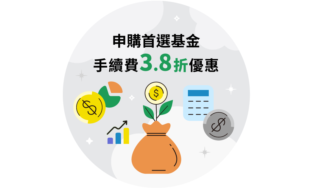 - 理財商品優惠之基金手續費優惠,於臨櫃、國泰世華 CUBE 網銀及國泰世華 CUBE App 單筆申購首選基金不限筆數享手續費 3.8 折優惠,適用本行每月公告之首選基金商品列表。