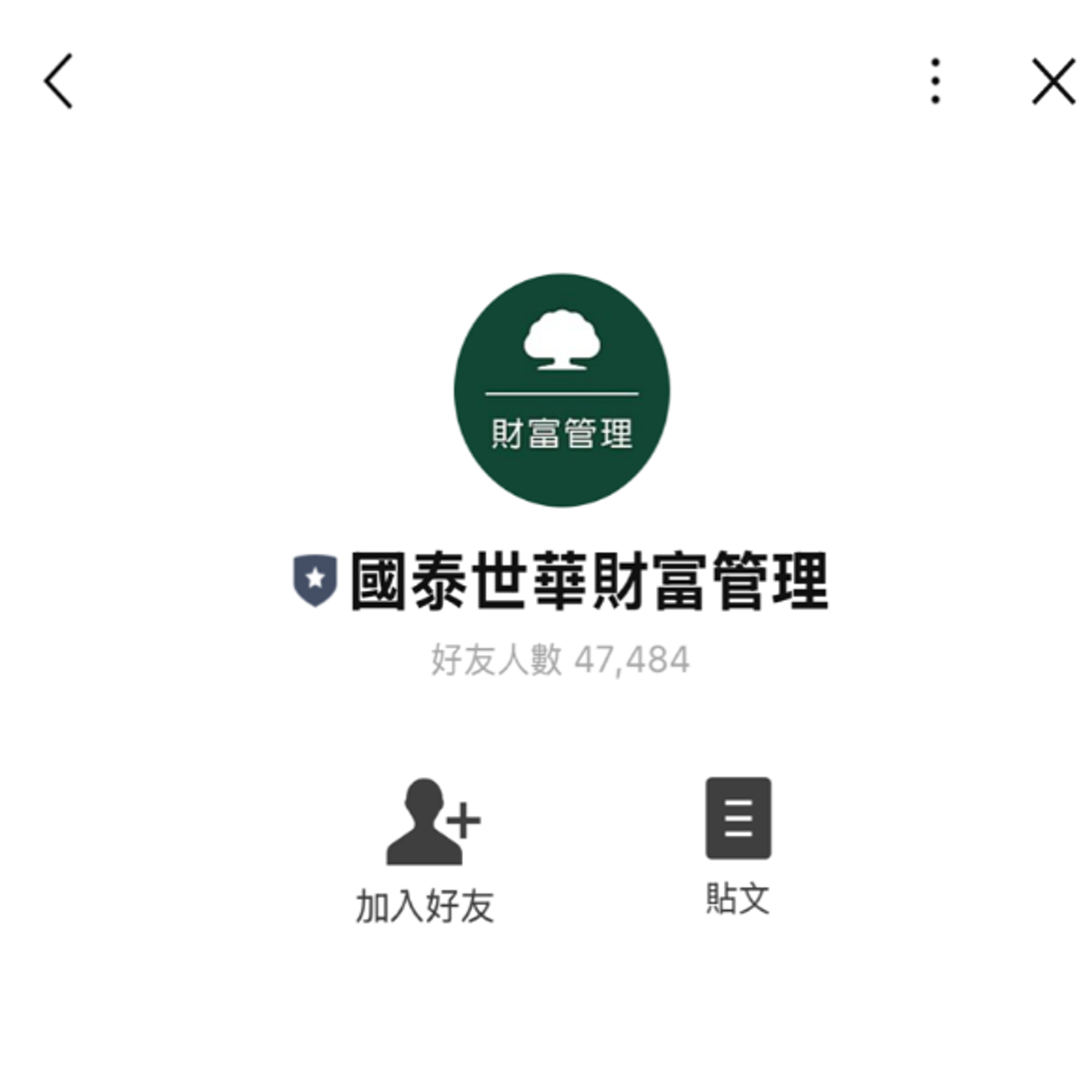 - 防詐騙提醒:請認明最高等級綠色盾牌認證的「國泰世華銀行」LINE官方帳號、藍 色盾牌認證的「國泰世華財富管理」LINE官方帳號,識別方式請詳本行官網說明。