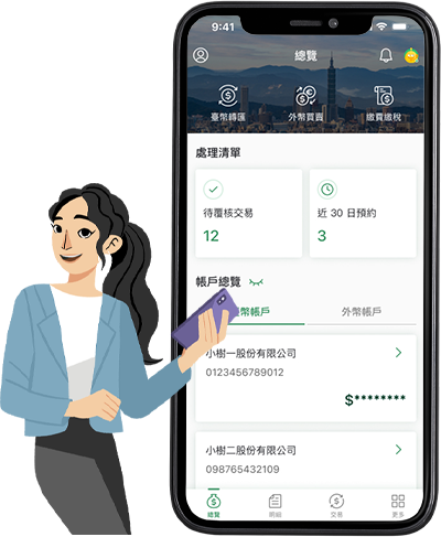 若您已臨櫃完成帳戶整合的申請,以主企業 ID 登入新版本 App 時,即可依照帳戶整合申請的權限,進行台灣關係戶的帳戶整合管理。