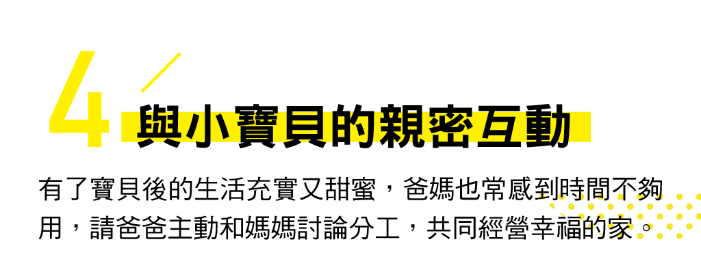 有了寶貝後的生活充實又甜蜜,爸媽也常感到時間不夠用,請爸爸主動和媽媽討論分工,共同經營幸福的家。