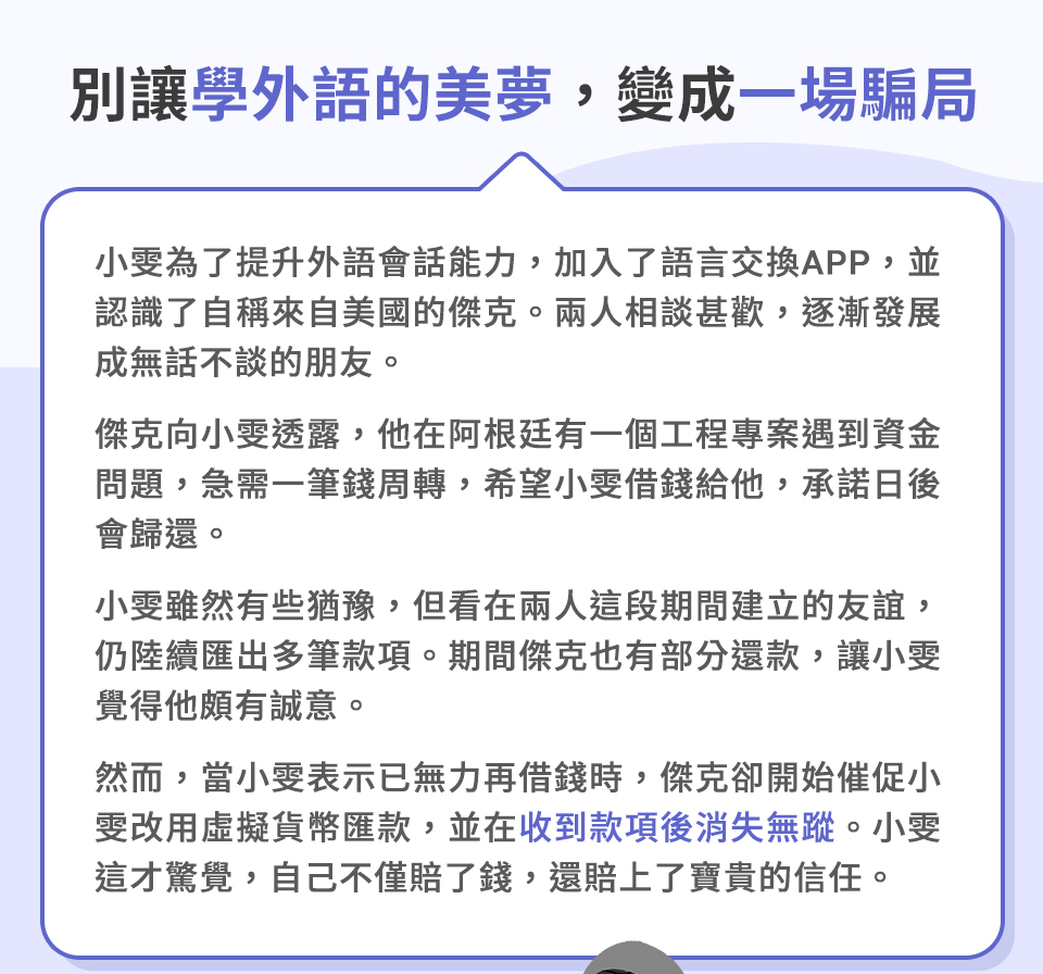 【國泰世華銀行】網路學外語,借錢陷阱多?交友APP藏風險,匯款前停看聽!
