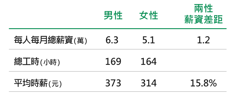 台灣兩性薪資差距為15.8%,女性需較男性多工作58天(365日曆天x15.8% ≒ 58天)