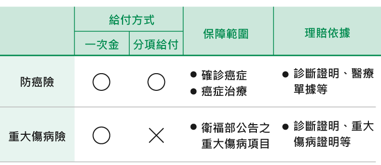 防癌險跟重大傷病險的比較