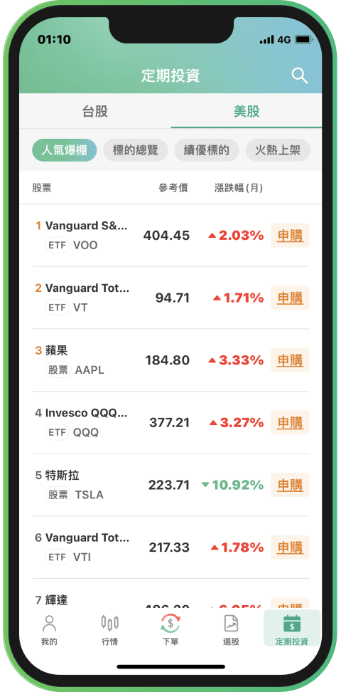 國泰證券App提供「智慧加減碼」能於相對高低點價位,依照你設定的條件自動加減碼,更科學地克服人性追高殺低的弱點。
