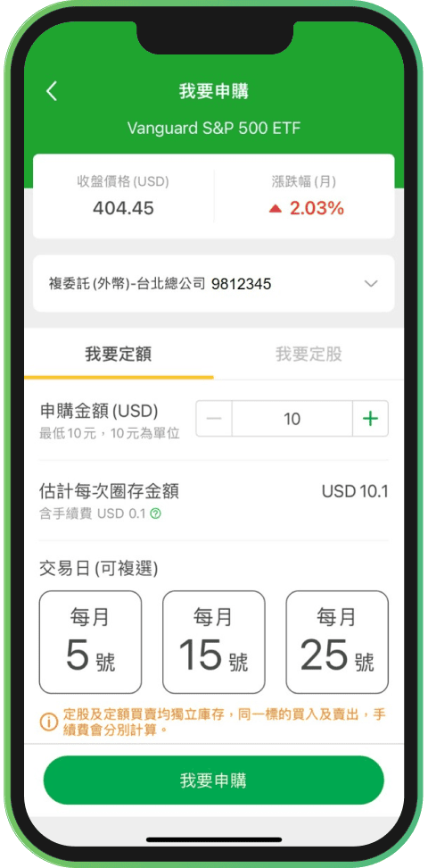 開複委託帳戶時可自選用台幣或外幣扣款,選擇台幣扣款則每次買賣都將自動換匯喔~